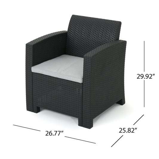 Velvora - Outdoor Wicker Set With 3 Seater Sofa, 2 Club Chairs, Coffee Table And Cushions - Brown