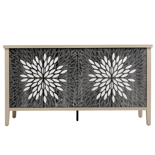 Modern Style Buffet Cabinet, Sideboard Buffet Cabinet With Storage, Storage Cabinet With 4 Diamond Shaped Relief Doors For Living Room, Dining Room, Entryway, Hallway, Kitchen - Gray - Gray