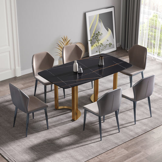 63" Modern Artificial Stone Panel V-Shaped Metal Legs, Can Accommodate 6-8 People