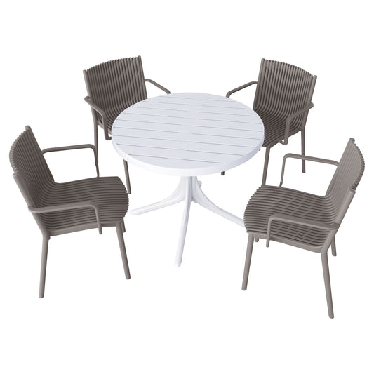 4 Modern Stackable Plastic Armchair Matched With Round Table