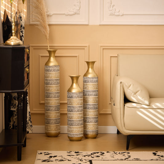 Floor Metal Vases Decorated White Metal Vases (Set of 3) Gorgeous Home Decoration Large Glazed Metal Vases - White