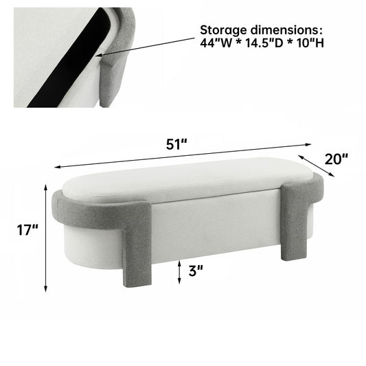 Large Versatile Storage Ottoman Bench: Spacious, Durable, Stylish - White / Light Gray