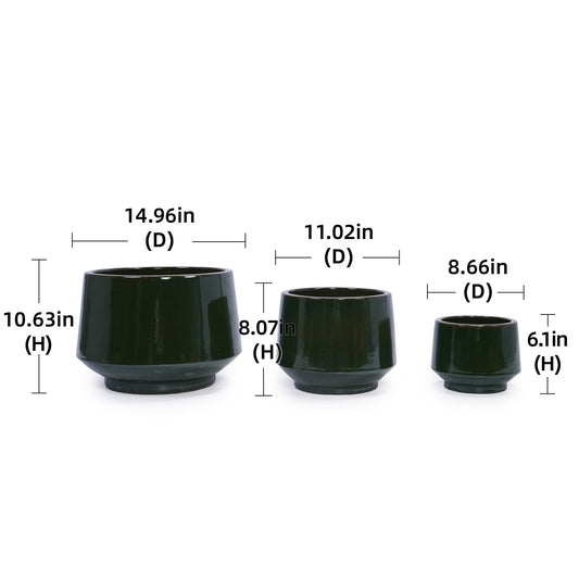 3 Pieces Flowerpot, Planter For Patio, Garden Or Windowsills - Dark Green