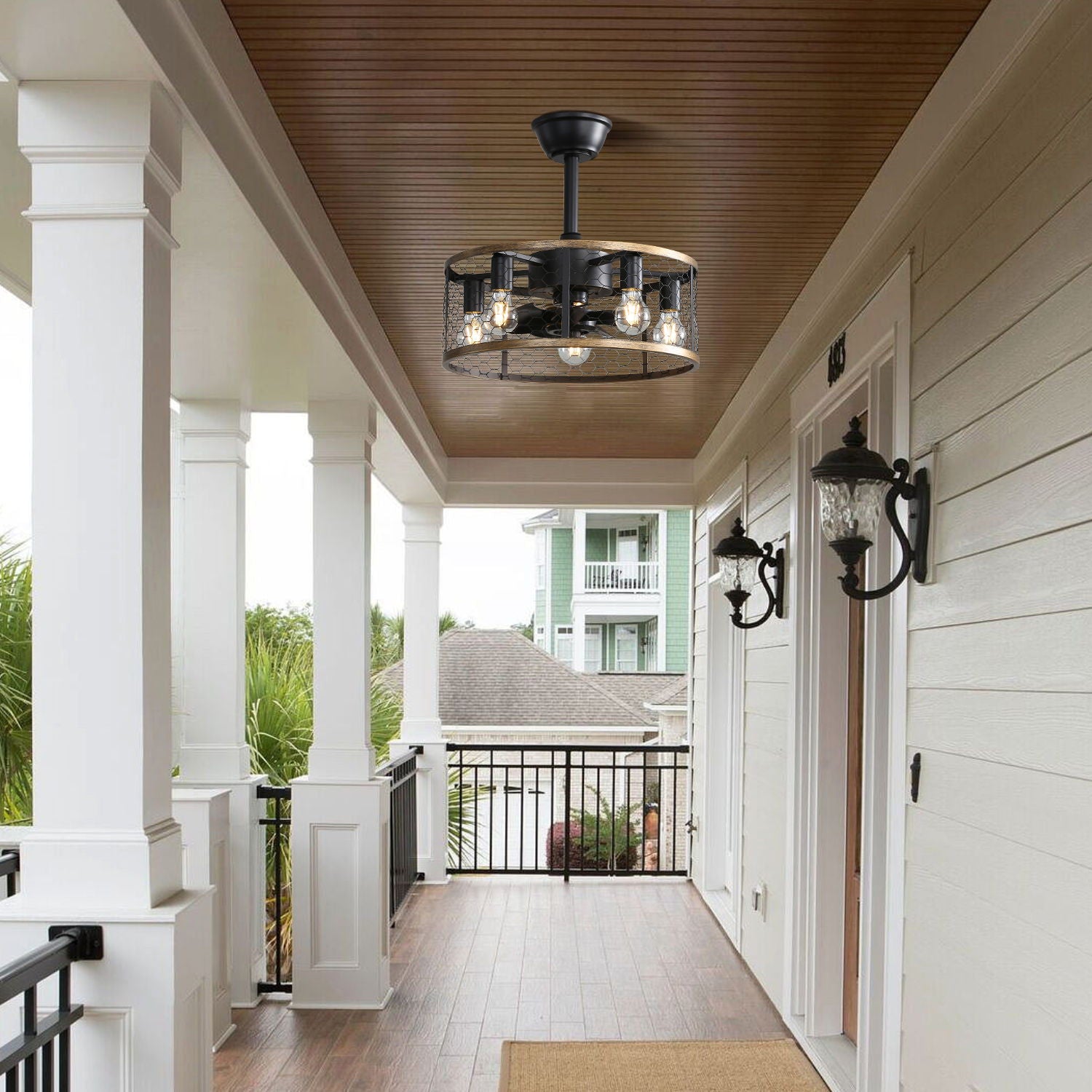 20" Industrial Caged Ceiling Fan With 7 - ABS Blades Remote Control, Small Ceiling Fan Reversible DC Motor - Black