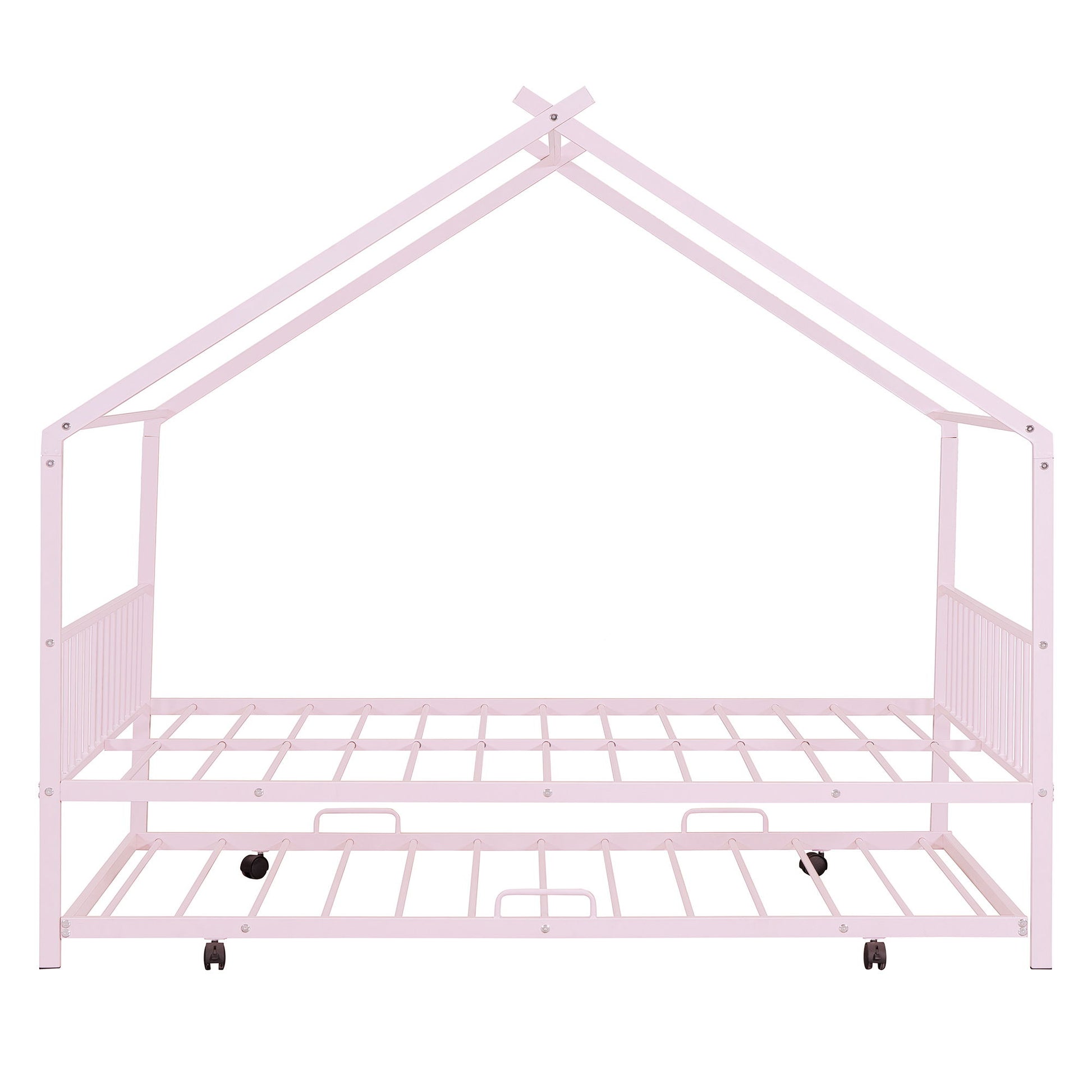 Twin Size House Bed With Twin Size Trundle - Pink