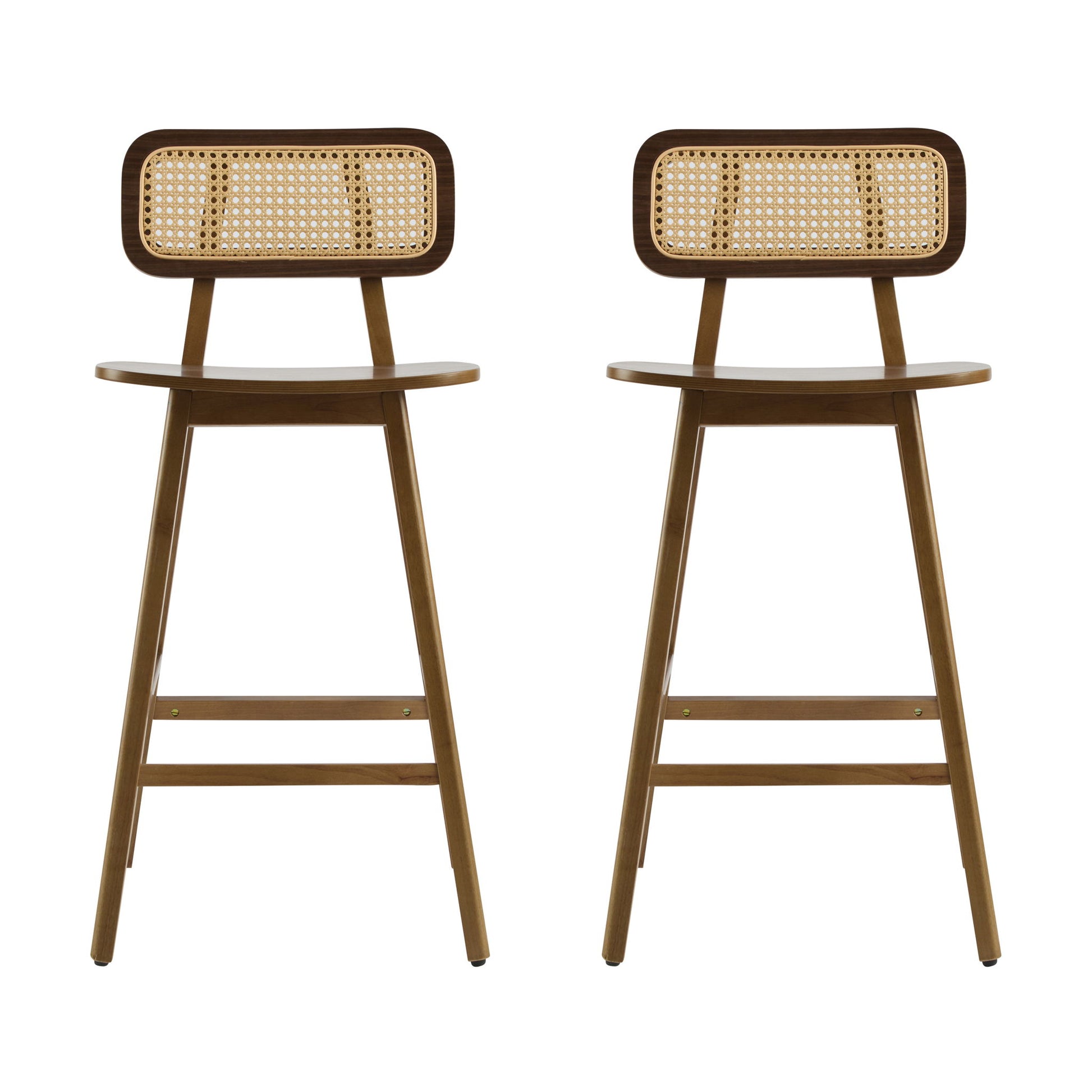 Bari - Indoor Wood Barstool (Set of 2) With And Rattan Backrest - Natural