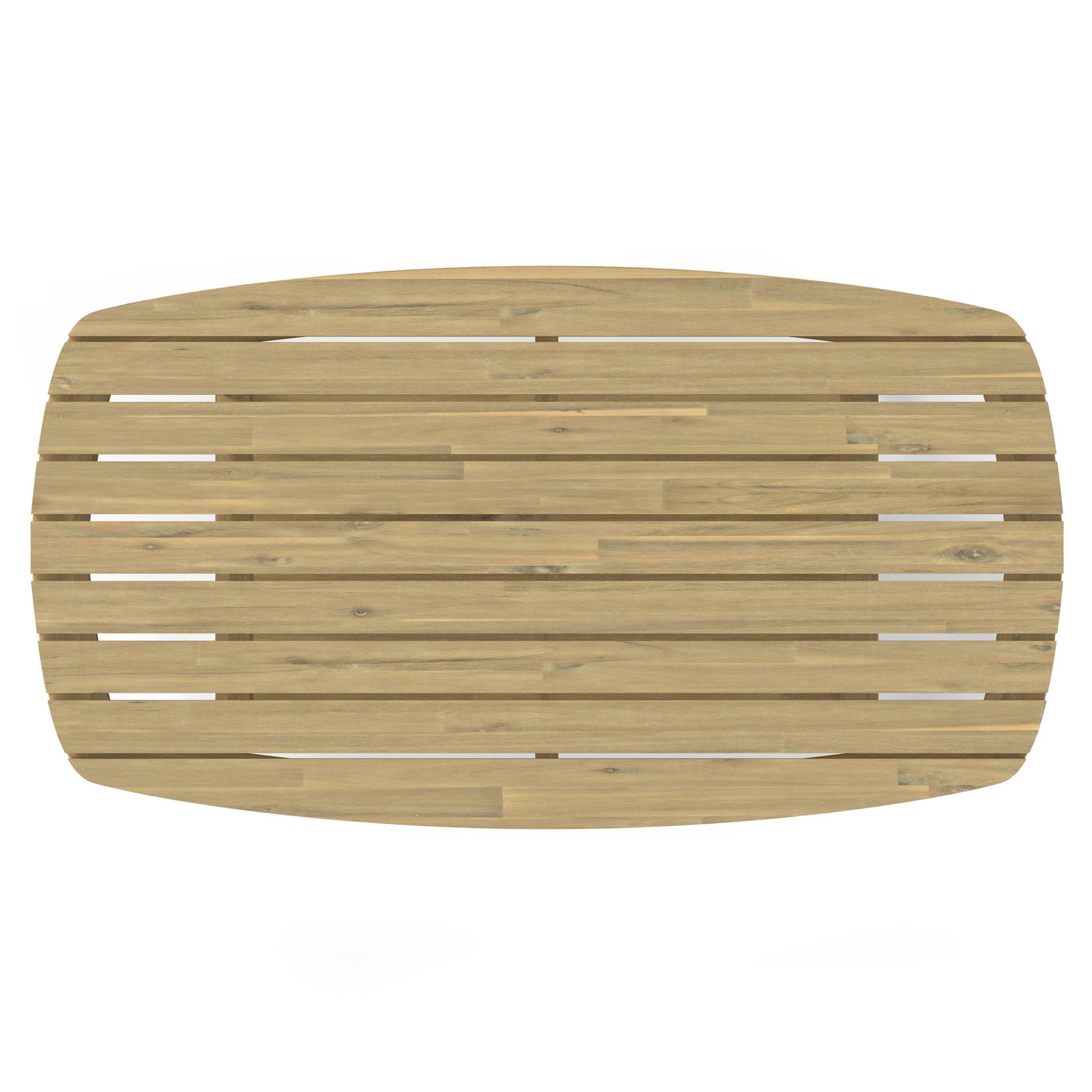 - Acacia wood brings a sleek and exotic look to your space, this durable hardwood naturally withstands outdoor elements and will not darken over time.