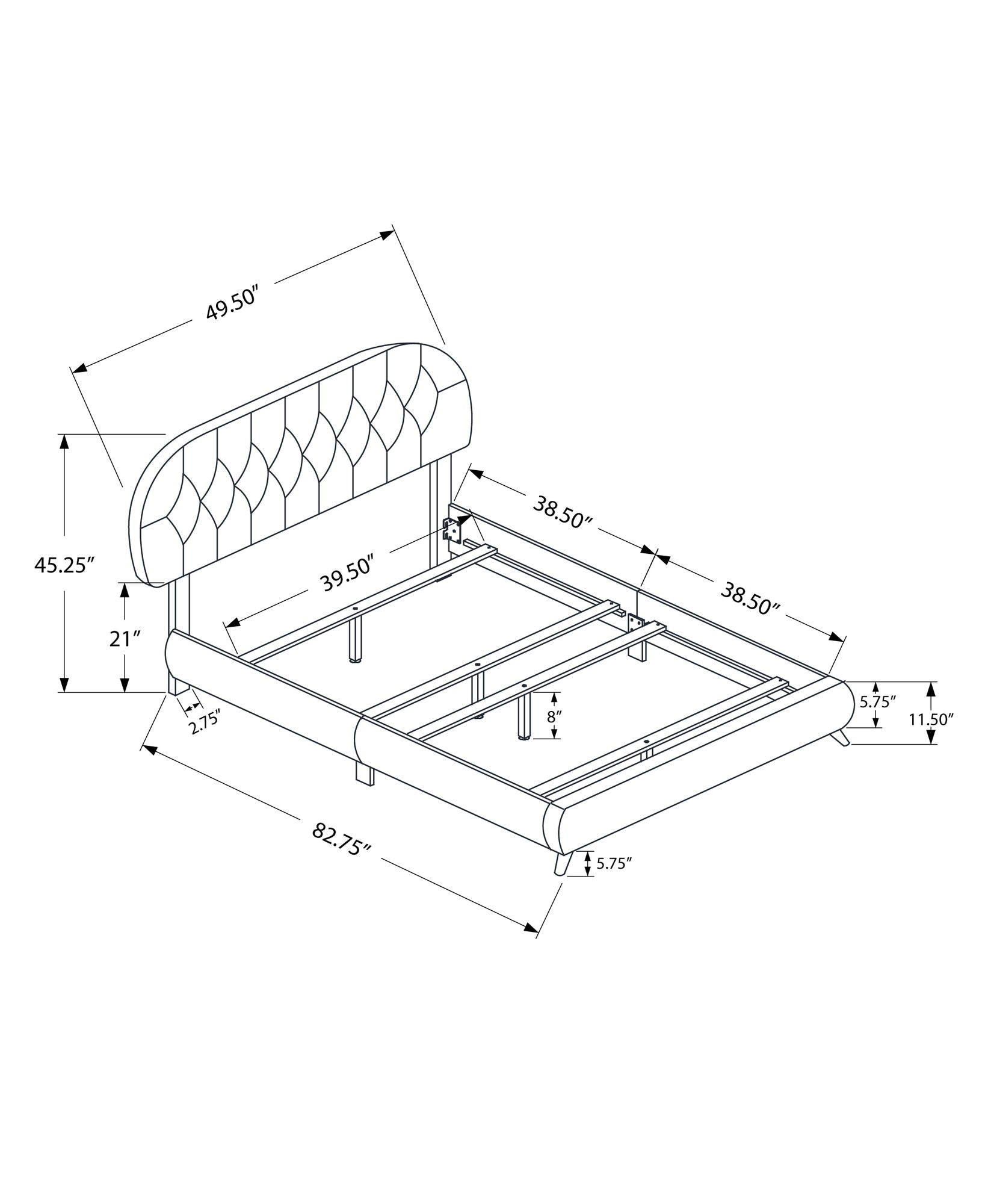 82.75"W x 49.5"D x 45.25"H - 51.0 lb