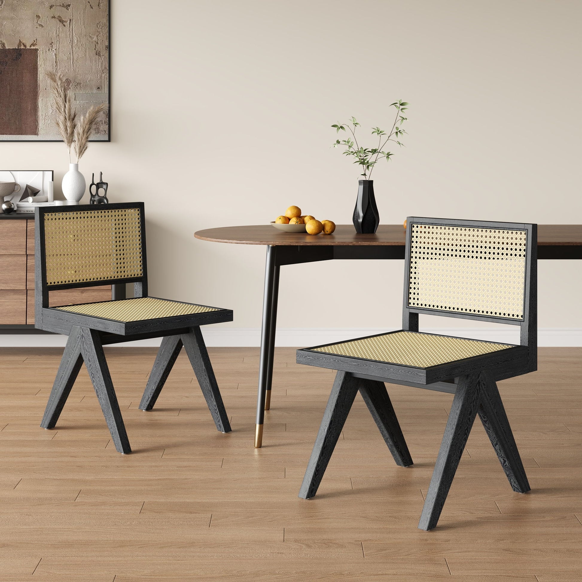 Chandigarh - Dining Room Chairs With Rattan And Solid Wood (Set of 2) - Natural