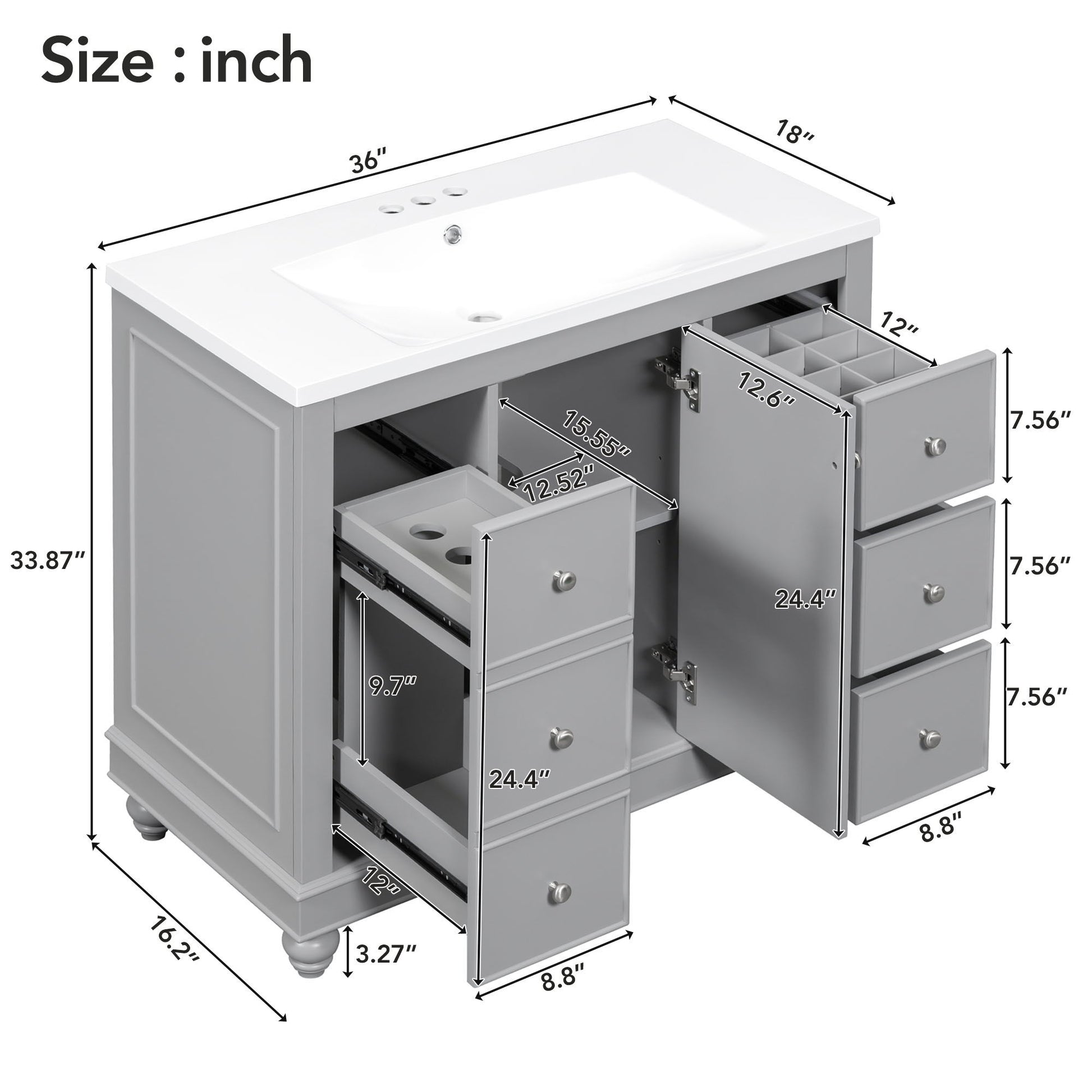 Contemporary Bathroom Vanity Cabinet, 4 Drawers & 1 Cabinet Door, Multipurpose Storage, Resin Integrated Sink, Adjustable Shelves, Solid Wood Frame With MDF - Gray
