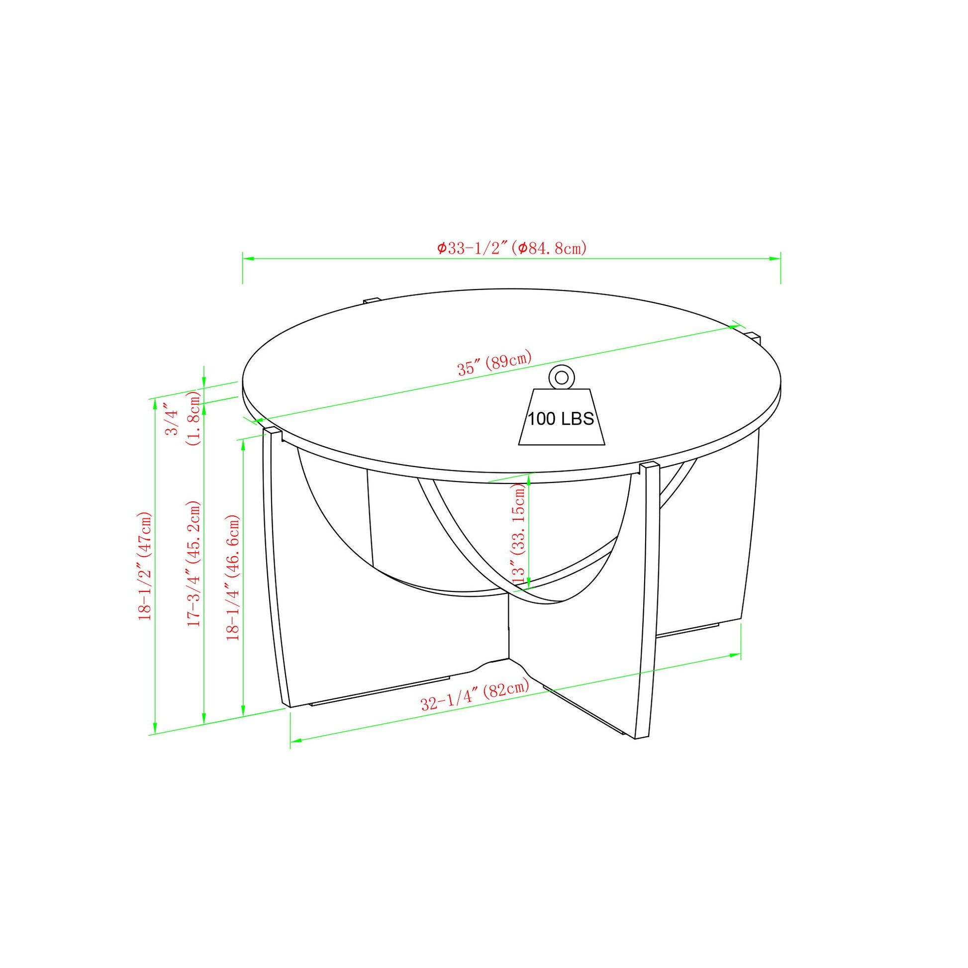 33.5"W x 35.0"D x 18.5"H - 29.0 lb
