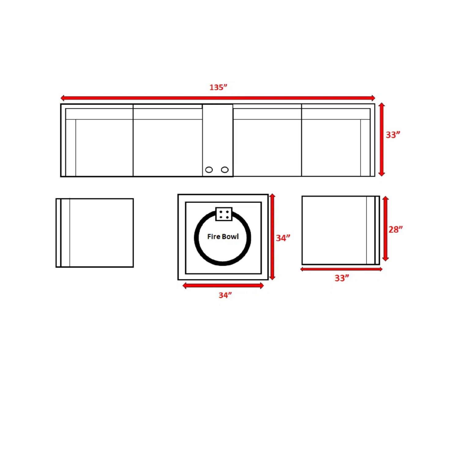 - Comprehensive Set: Includes a modular sofa, 2 club chairs, and a 40,000 BTU propane fire pit with a matching cover.