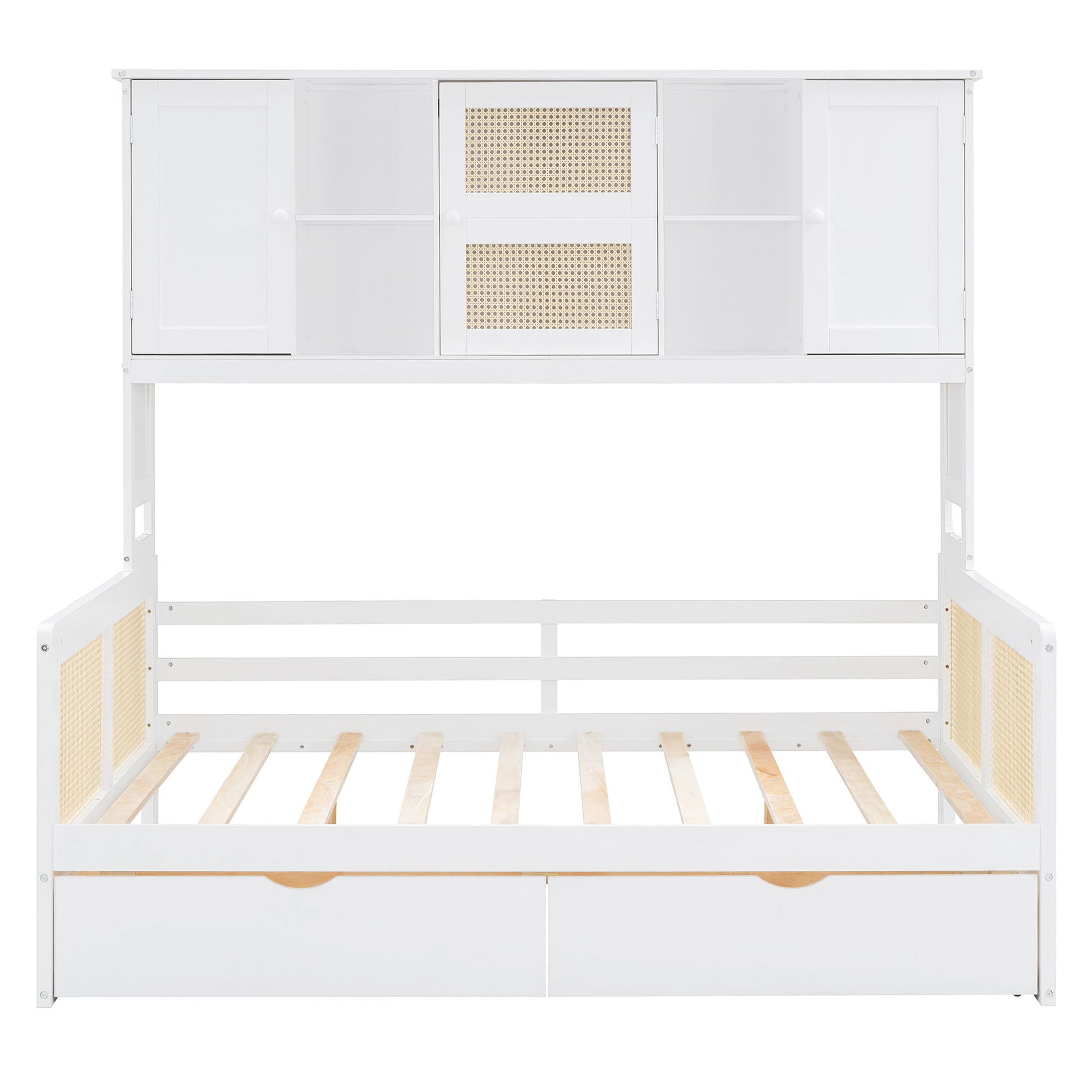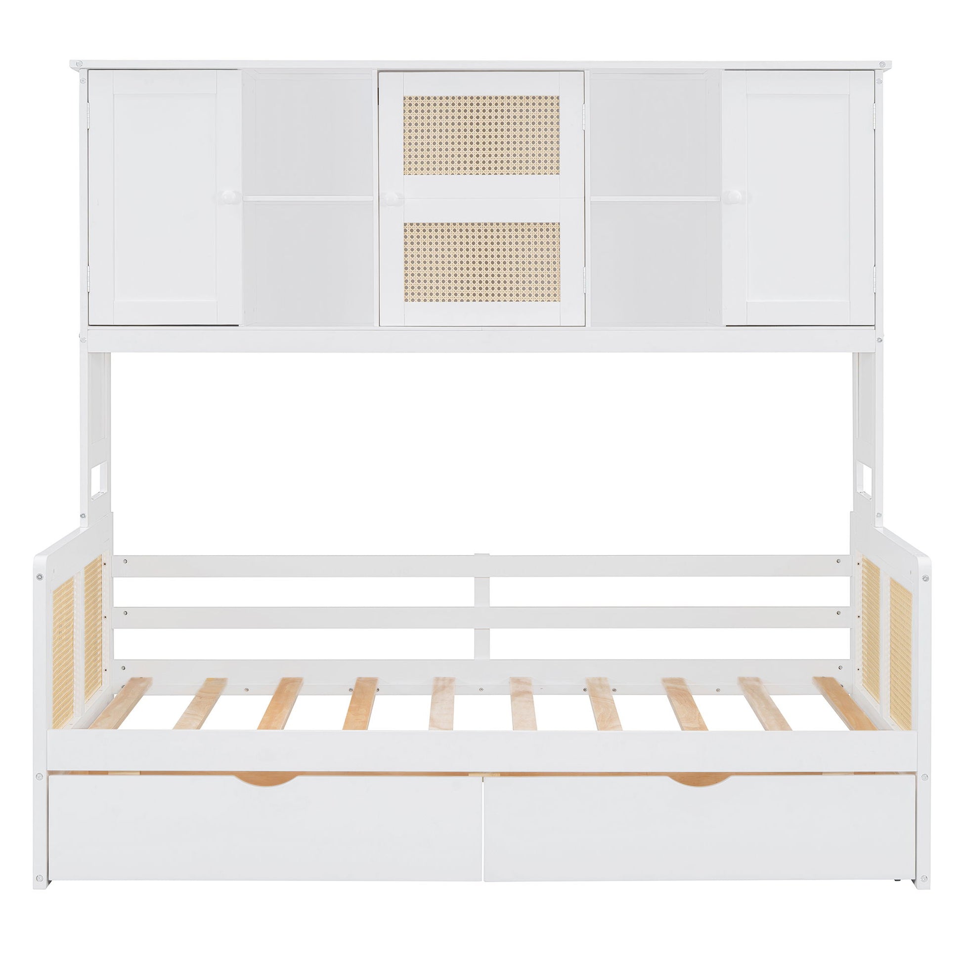 Modern Design: Our wooden storage daybed frame boasts a simple and elegant style that harmonizes seamlessly with a variety of home furniture. The rattan design, made of plastic material, adds a touch of sophistication.