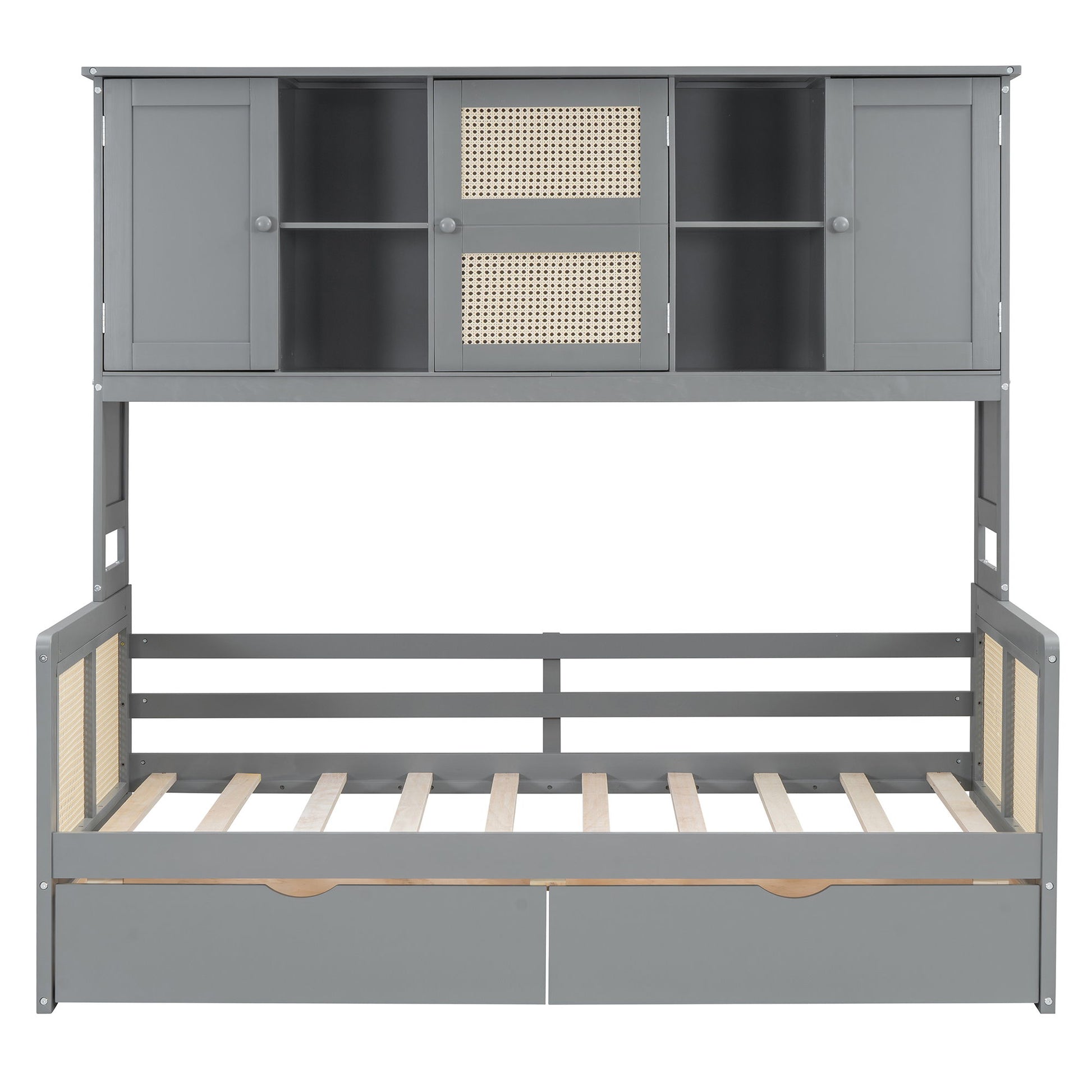 Full Size Wooden Daybed With 2 Drawers, And All In One Cabinet And Shelf - Gray