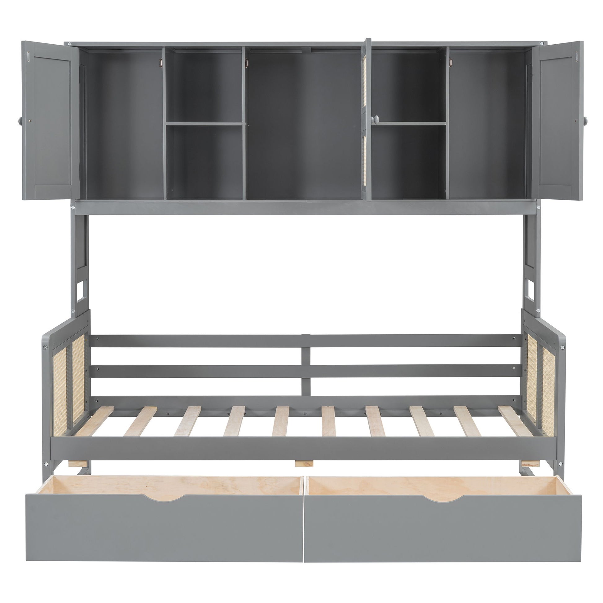 Twin Size Wooden Daybed With 2 Drawers, And All In One Cabinet And Shelf - Gray