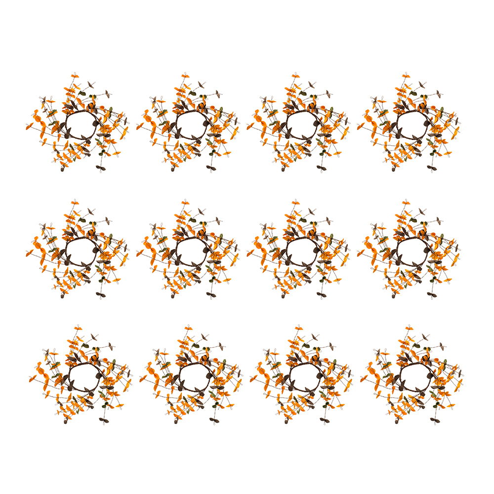 Fall Leaves Wreath, Botanicals Decor For Harvest Festival Fall Festival & Thanksgiving Table Decorations (Set of 12) - Orange Multi