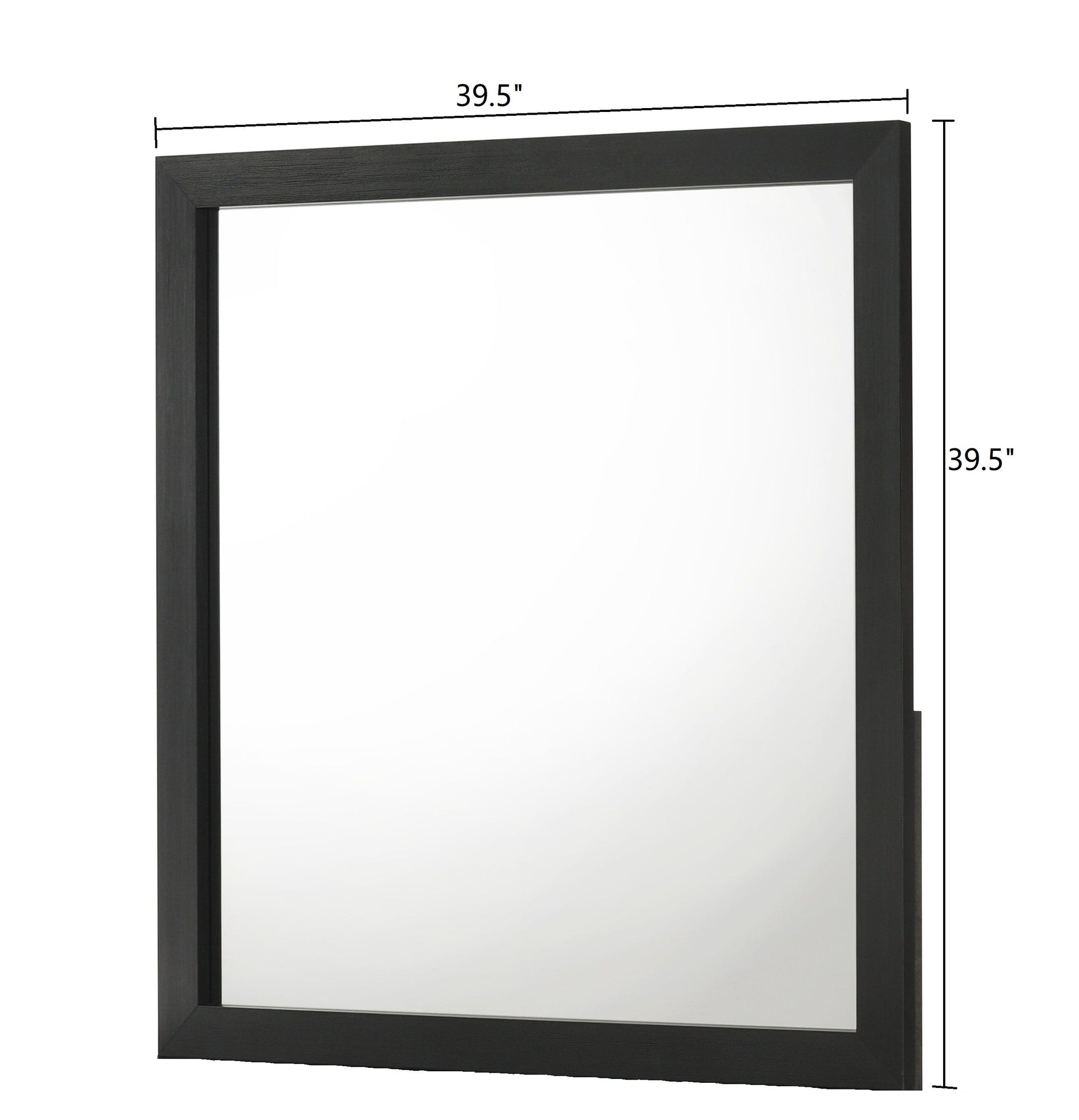 This bedroom collection strikes a balance between bold and classic styles. It features a striking bed with a high, textured headboard that commands attention. The accompanying case goods, including a dresser with a mirror, chest, and nightstand, are all finished in a sharp, black hue that adds depth and modernity to any bedroom. Each piece is accented with sleek metal handles that contrast beautifully against the dark finish. The clean lines and uncluttered design of the furniture allow for versatile placement in a variety of interior styles, from contemporary to transitional.