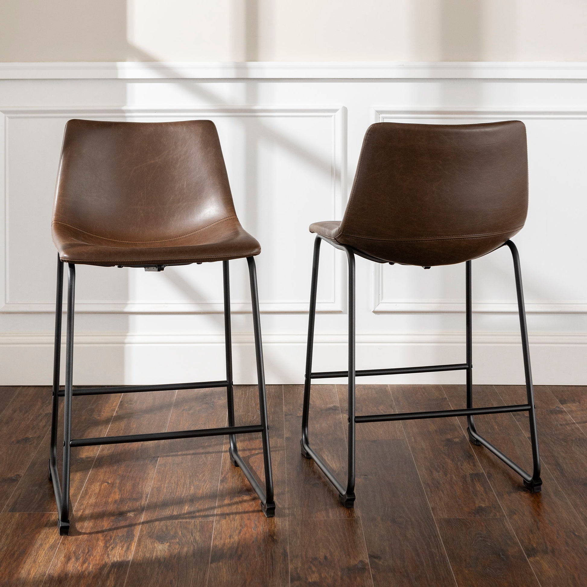 Industrial Faux Leather Counter Stools (Set of 2) - Brown
