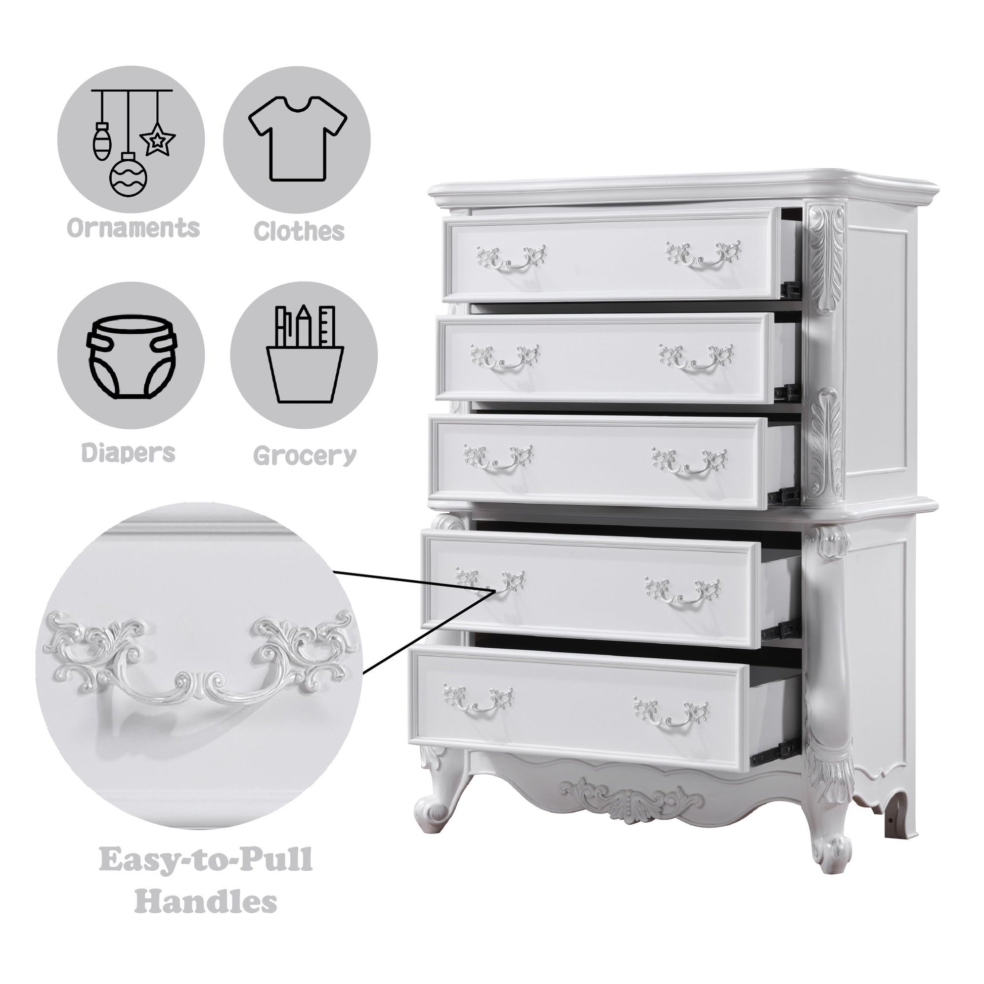 - Refined Style: This chest features a fresh white finish, offering a refined and timeless look that complements any room decor.