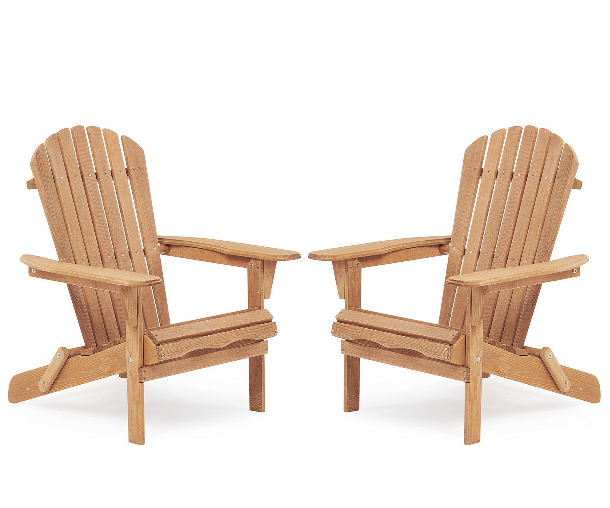 Wooden Outdoor Folding Adirondack Chair (Set of 2) For Garden Lawn - Natural / Light Brown