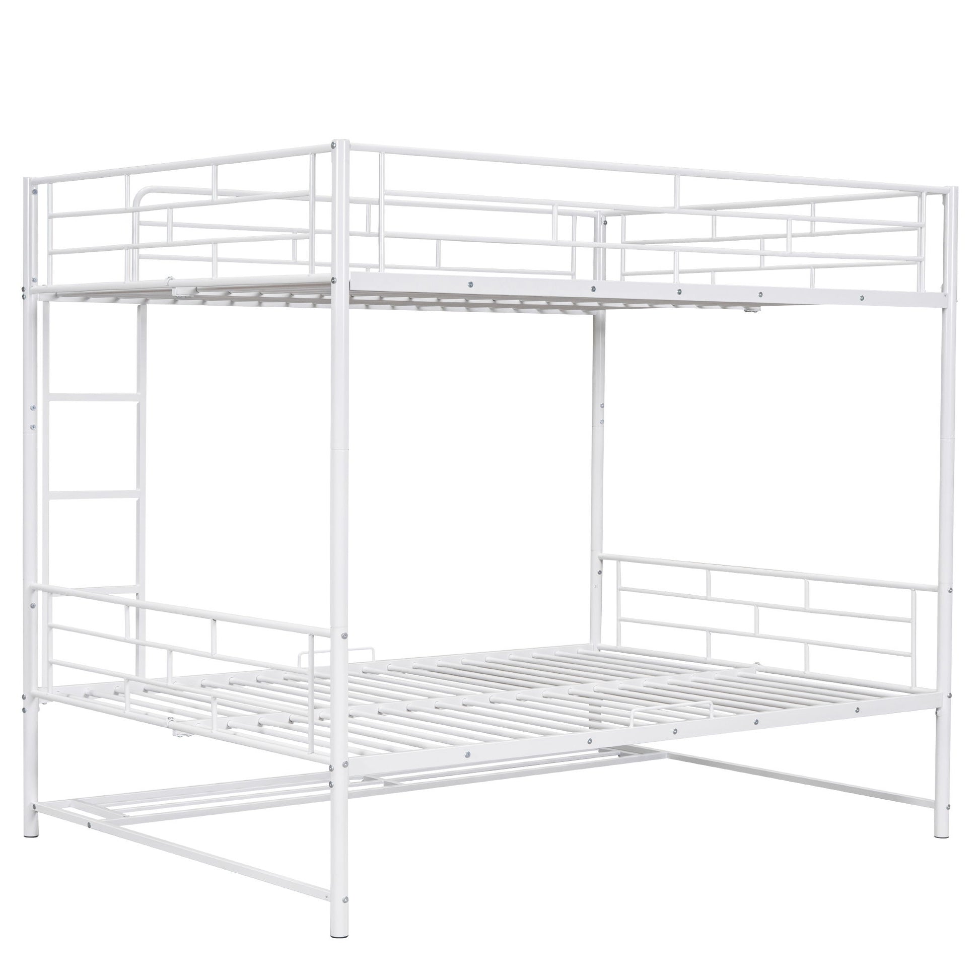 This metal bunk bed is made with sturdy metal and has a clean-cut silhouette that can be matched with any room decor. Designed with safety in mind, this bunk bed comes with a ladder integrated into the frame that is easy to climb up and down. With a practical design, this versatile bunk bed can be separated into two beds to meet your different needs.The shelf underneath the bunk bed creates extra space for you to stock shoes, boxes, toys or any small items you like. Some assembly is required, and the bed will definitely be assembled conveniently.