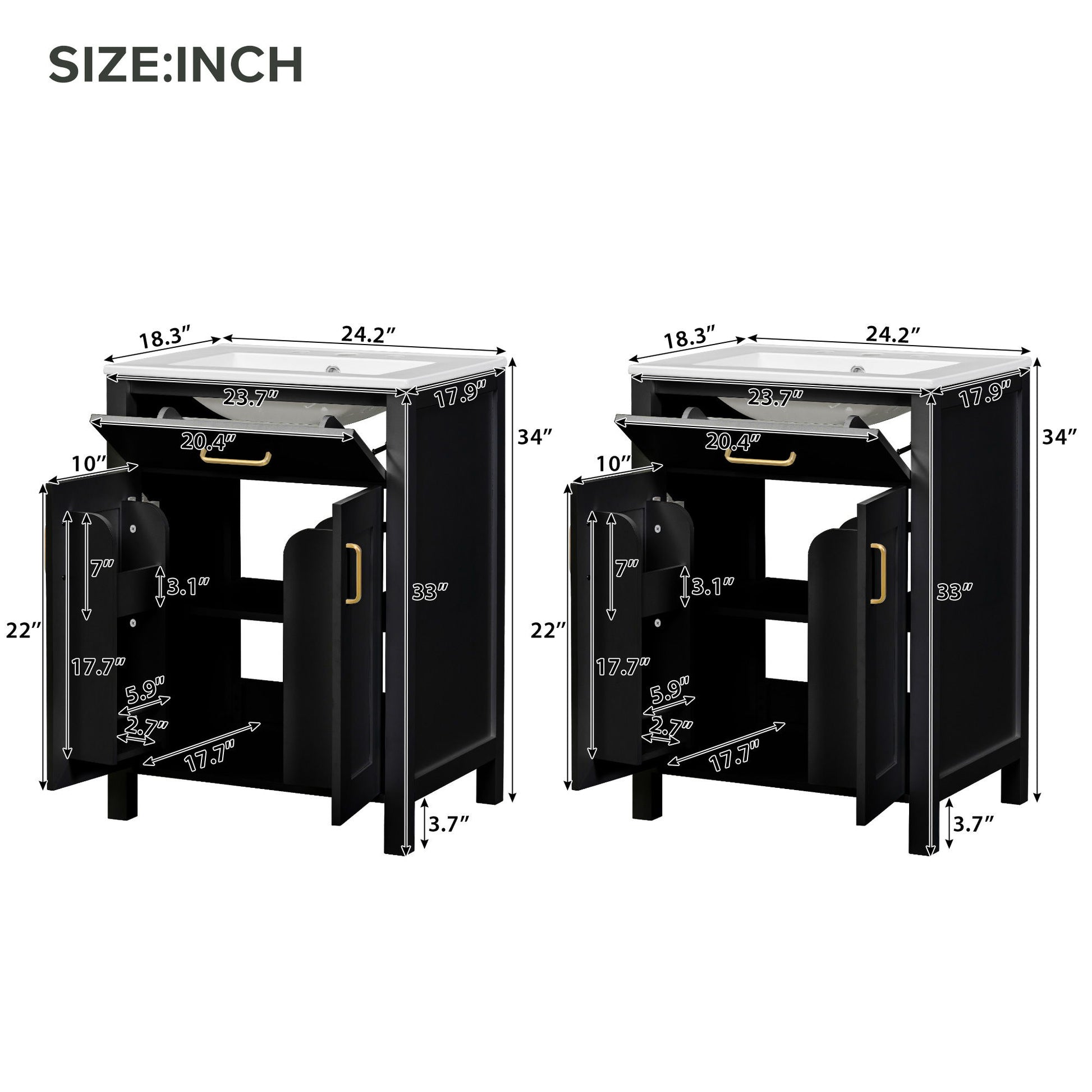 Bathroom Vanity With Sink, Soft Close Doors, Flip Drawer, U Shaped Shelves - Black