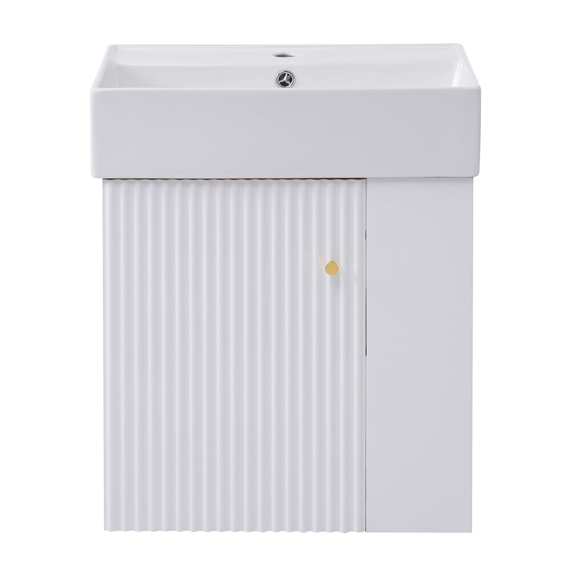 Modern Floating Bathroom Vanity With Ceramic Basin Perfect For Small Bathrooms, Right Side Storage - White