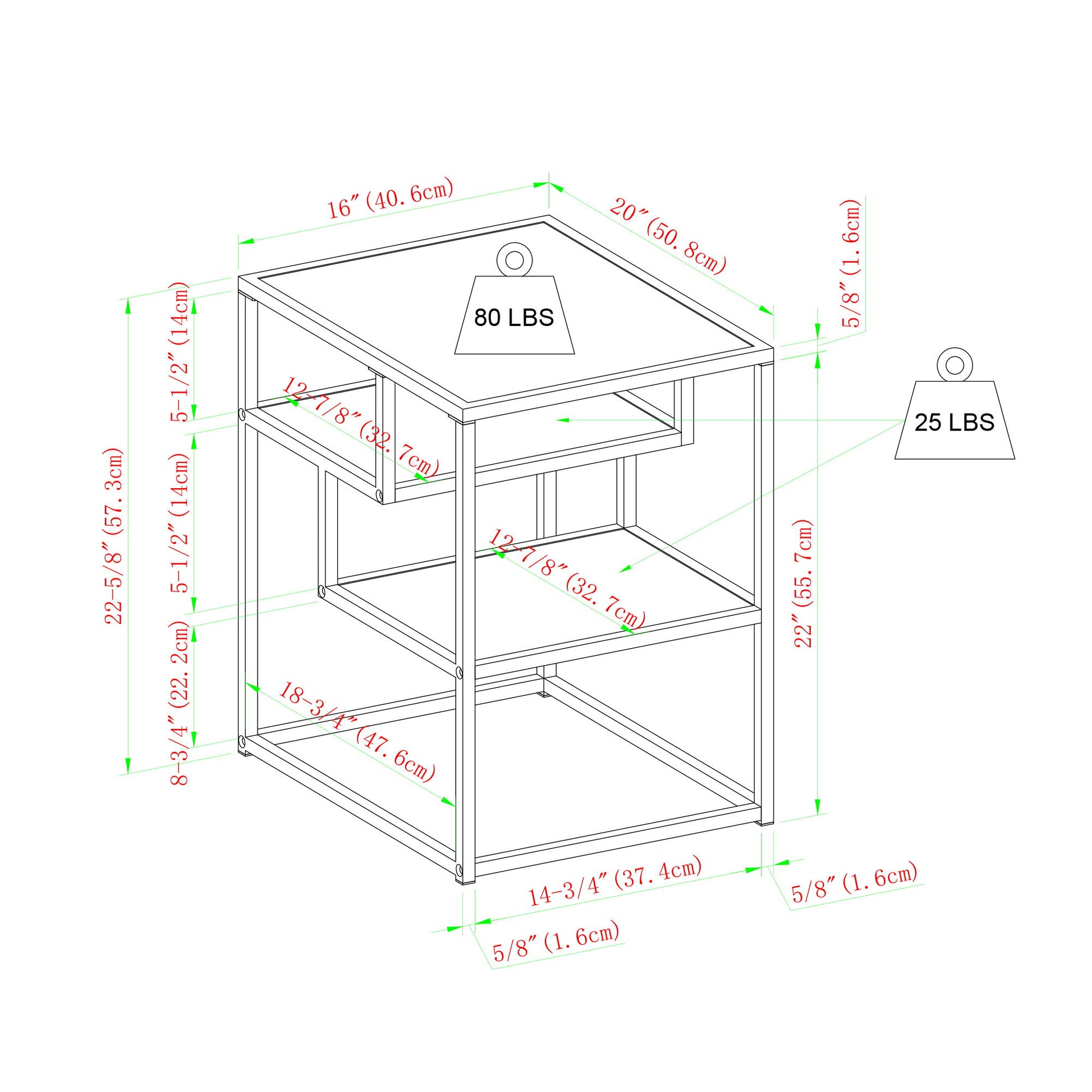 20.0"W x 16.0"D x 22.63"H - 18.0 lb