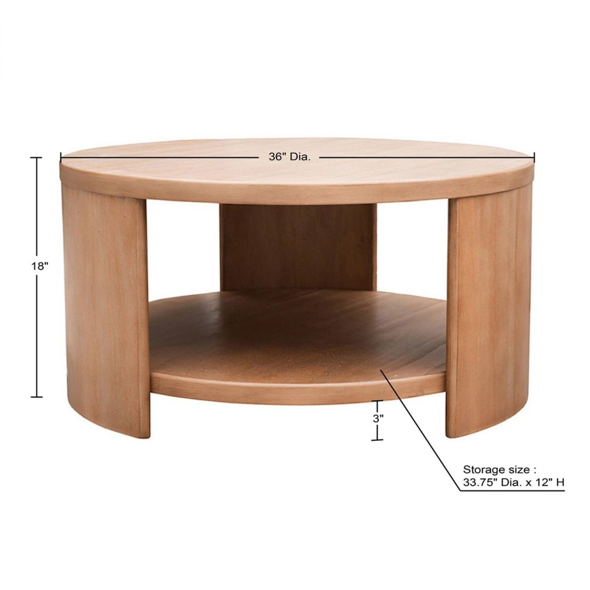 Modern Minimalist Round Coffee Table With Shelf Storage - Natural