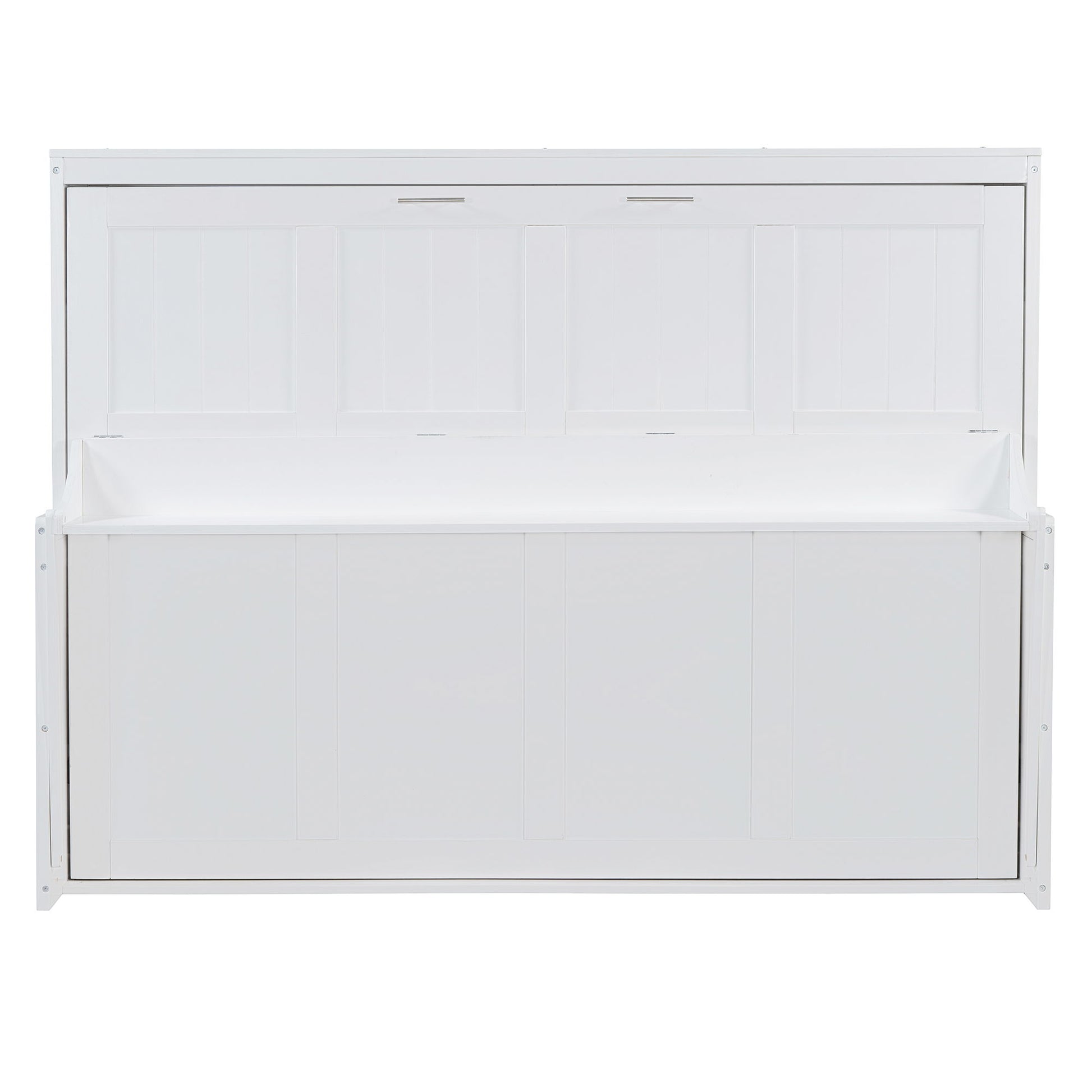 Queen Size Murphy Bed With Hydraulic Lift & Desk Design - White