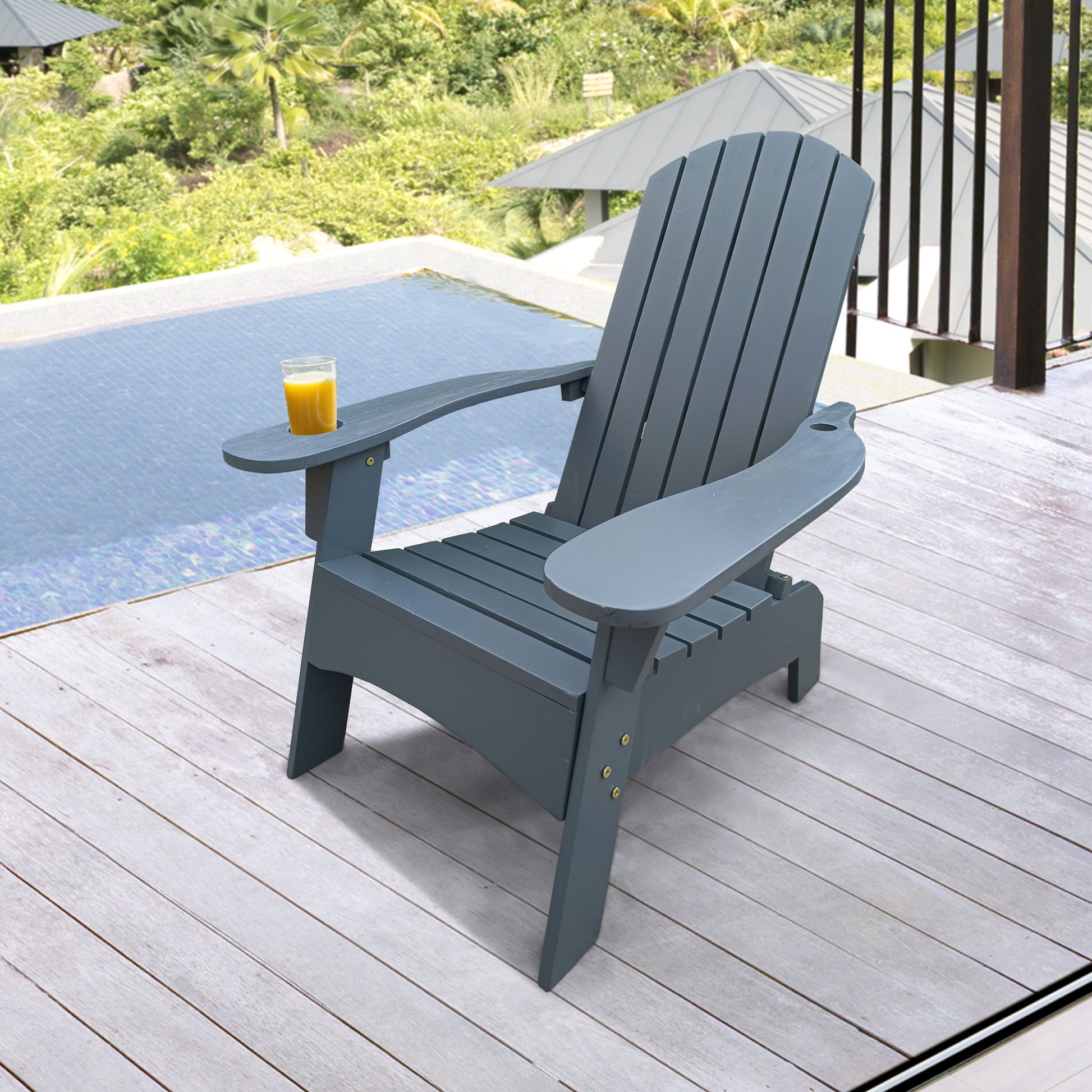 Outdoor Or Indoor Wood Adirondack Chair With An Hole To Hold Umbrella, On The Arm - Gray