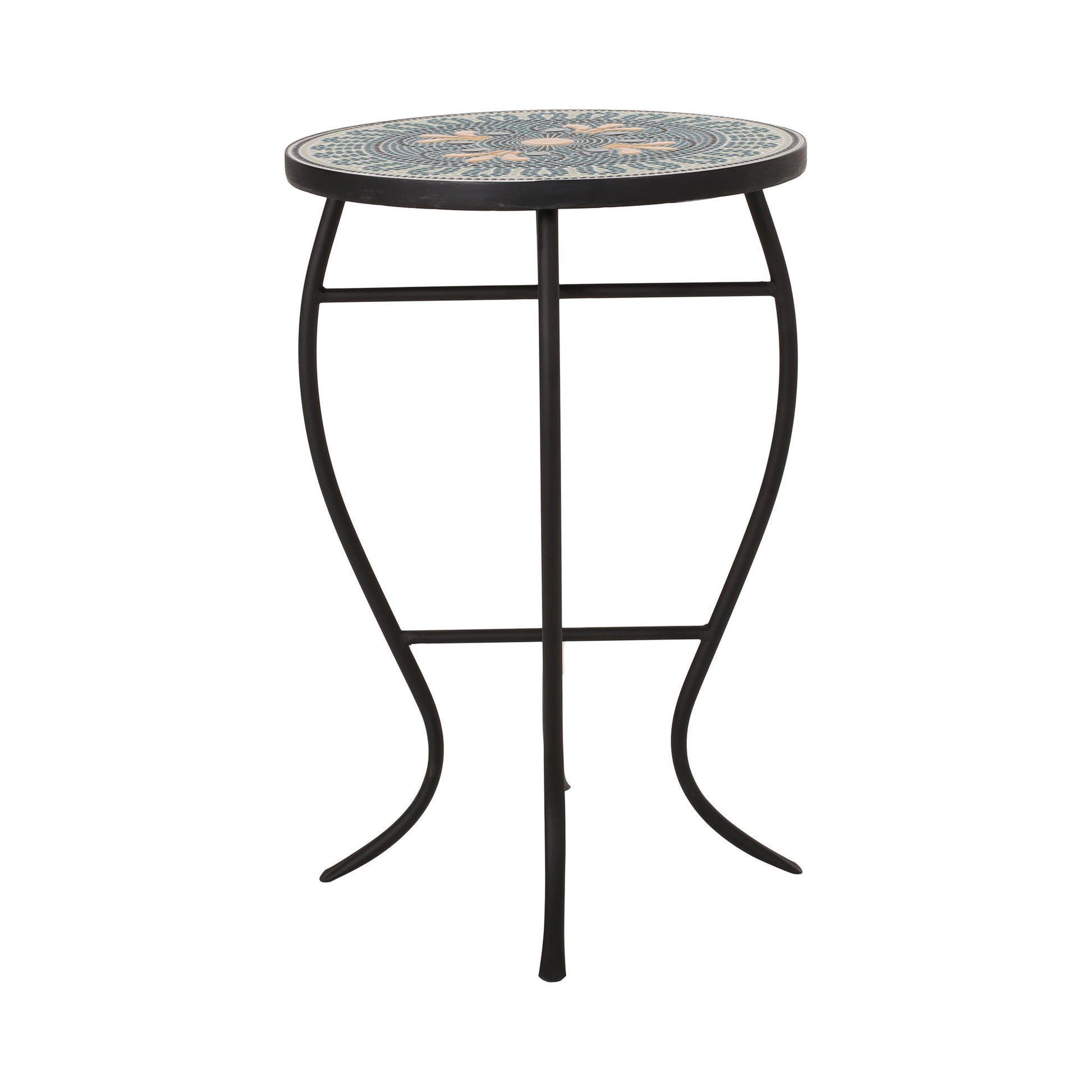 Outdoor Side Table With Tile Mosaic Table Top - Black