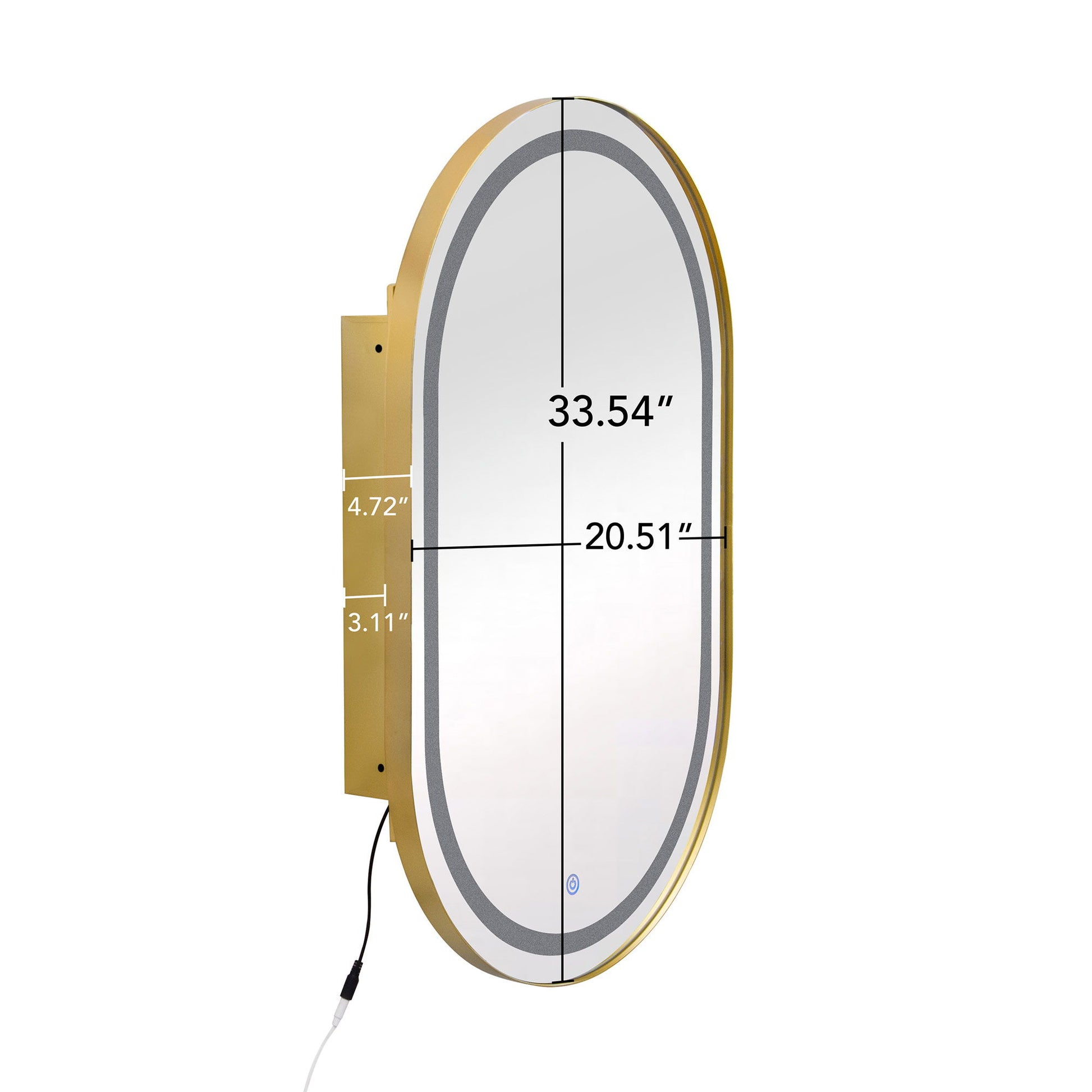 Oval Medicine Cabinet Mirror Bathroom Mirror With Storage Wall Mounted Medicine Mirror Cabinet With LED - Golden