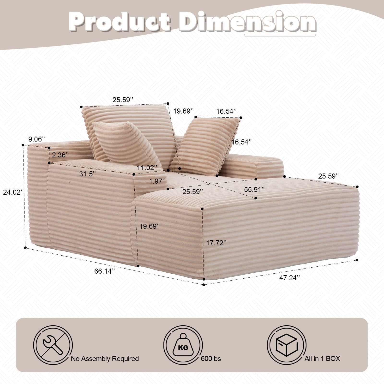 Oversized Chaise Lounge Chair Cozy Cloud Couch, Plush Corduroy Upholstered Sleeper Sofa Daybed With 3 Throw Pillows And Wide Armrest For Living Room - Beige