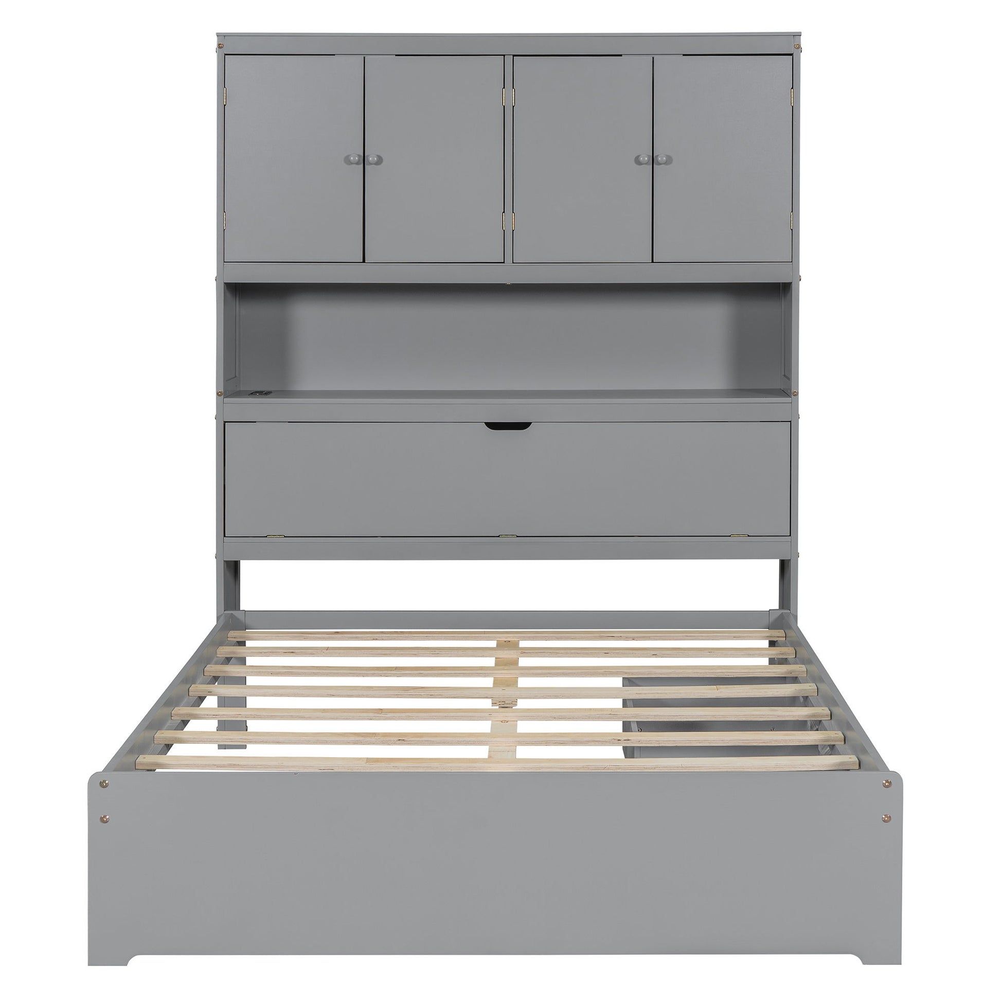 Full Size Platform Bed With USB, Storage Headboard & Drawers - Gray
