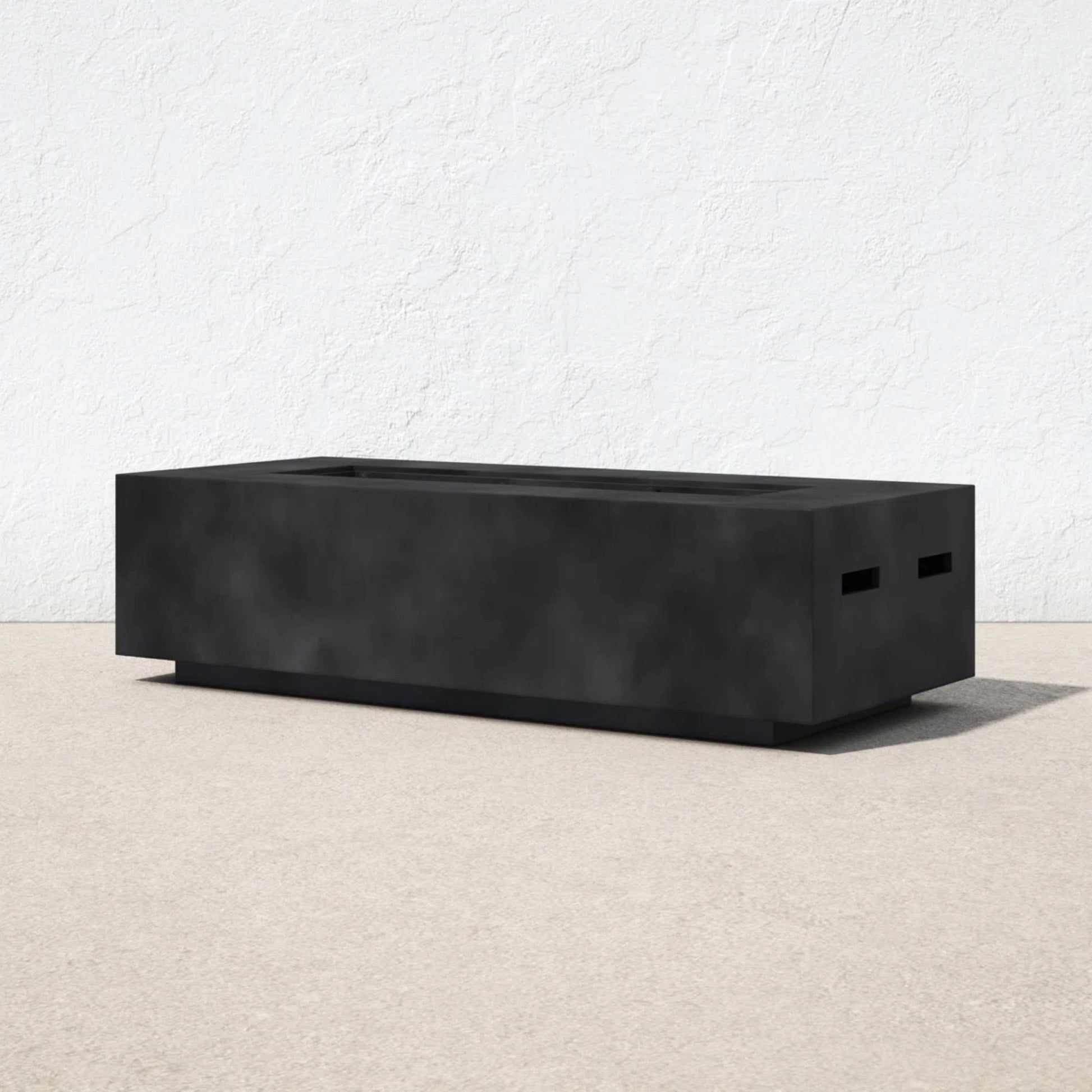 - Sleek Modern Design: This outdoor fireplace features a long, low-profile silhouette with a block foot and crisp edges, crafted from weather-resistant reinforced concrete, to complement a modern, minimalist aesthetic.