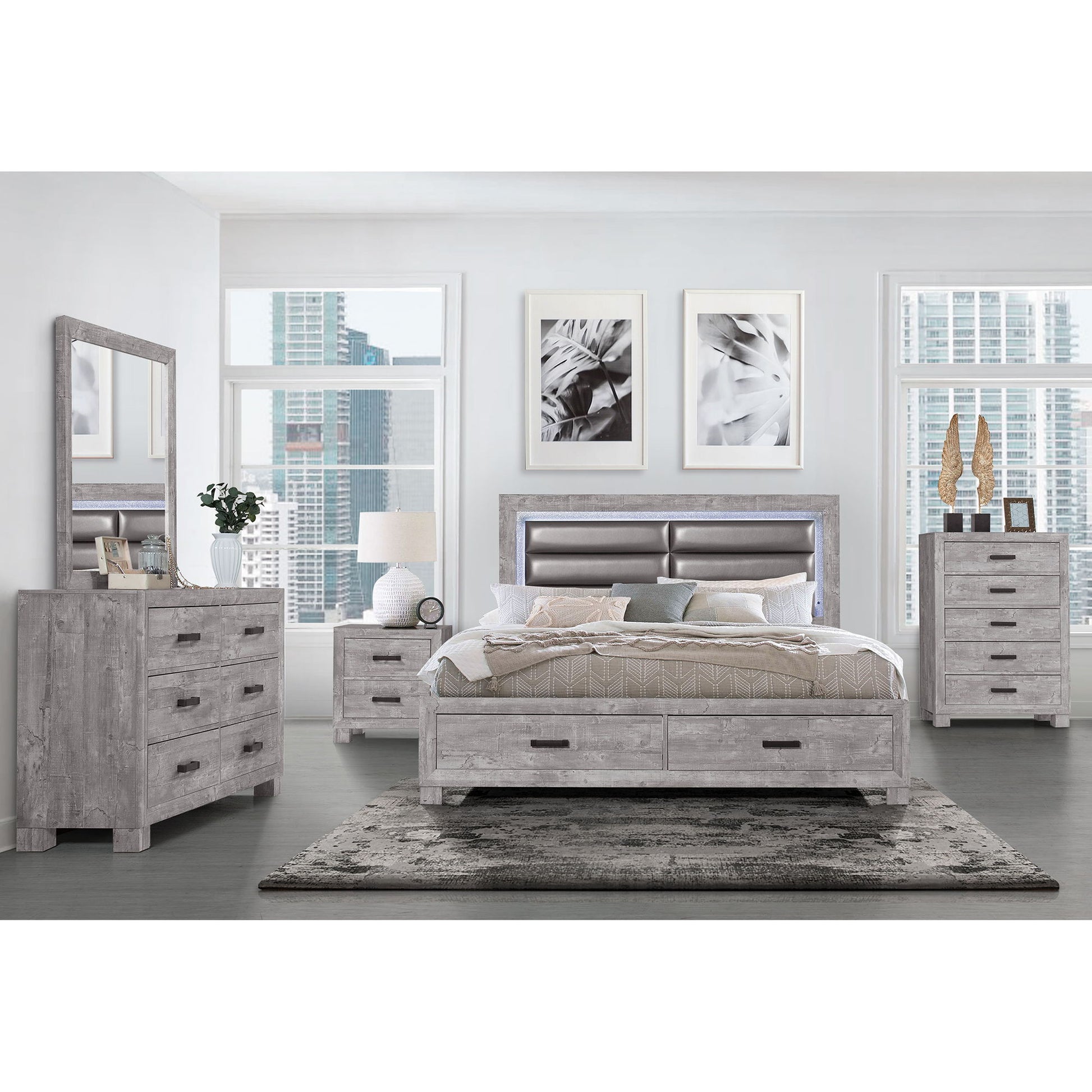 - LED Accent Lighting: The headboard is enhanced with LED accent lighting, offering a soft glow for added ambiance and functionality, with power controls on either side for easy access.