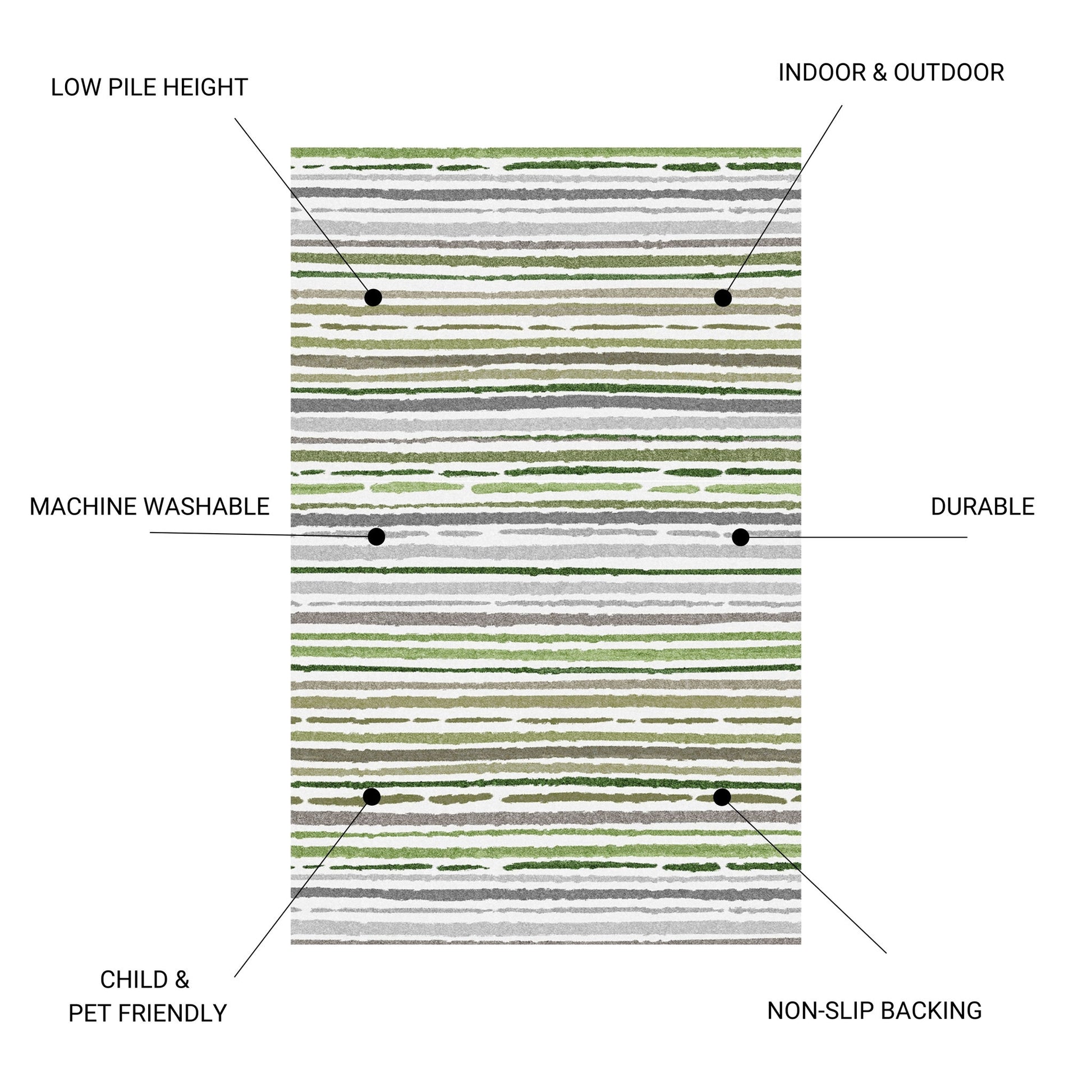 Sphinx - Indoor & Outdoor Washable Non - Slip Runner Rug - Beige Multi / Green Multi