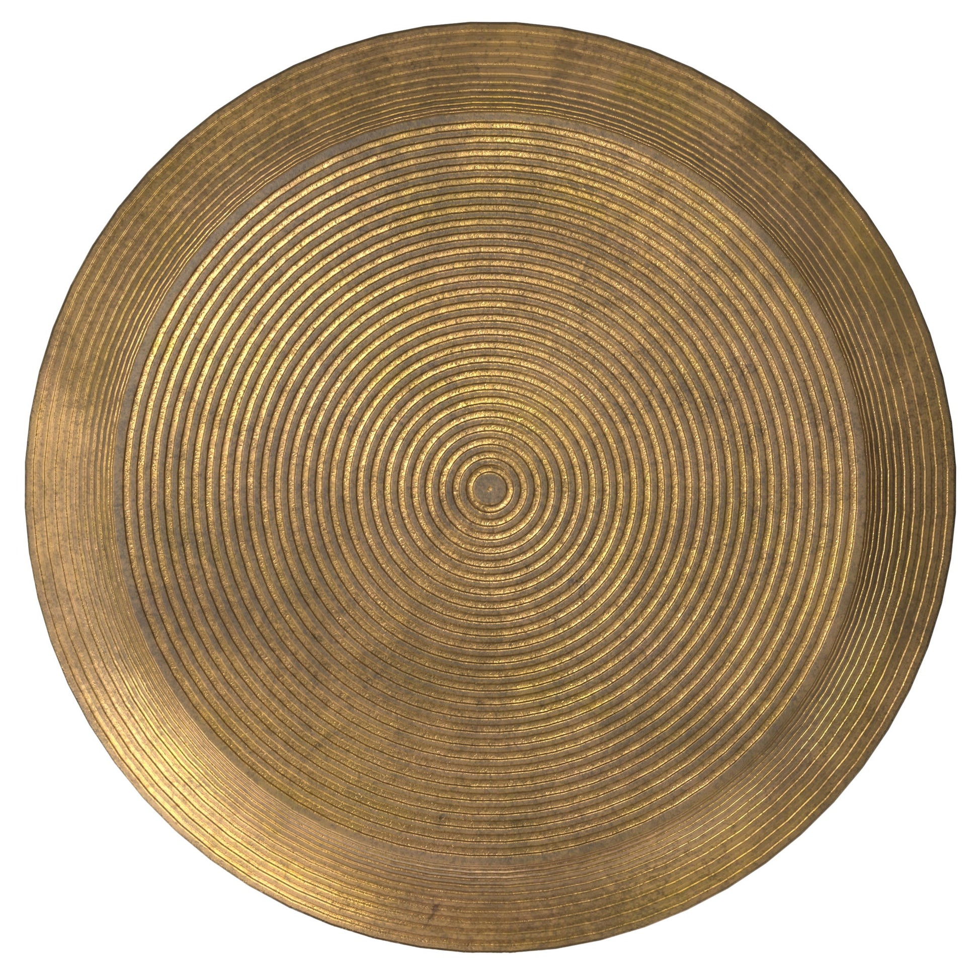 - Hand-finished in Antique Brass with a subtle texture on the base and a ringed pattern on the tabletop that make each piece unique.