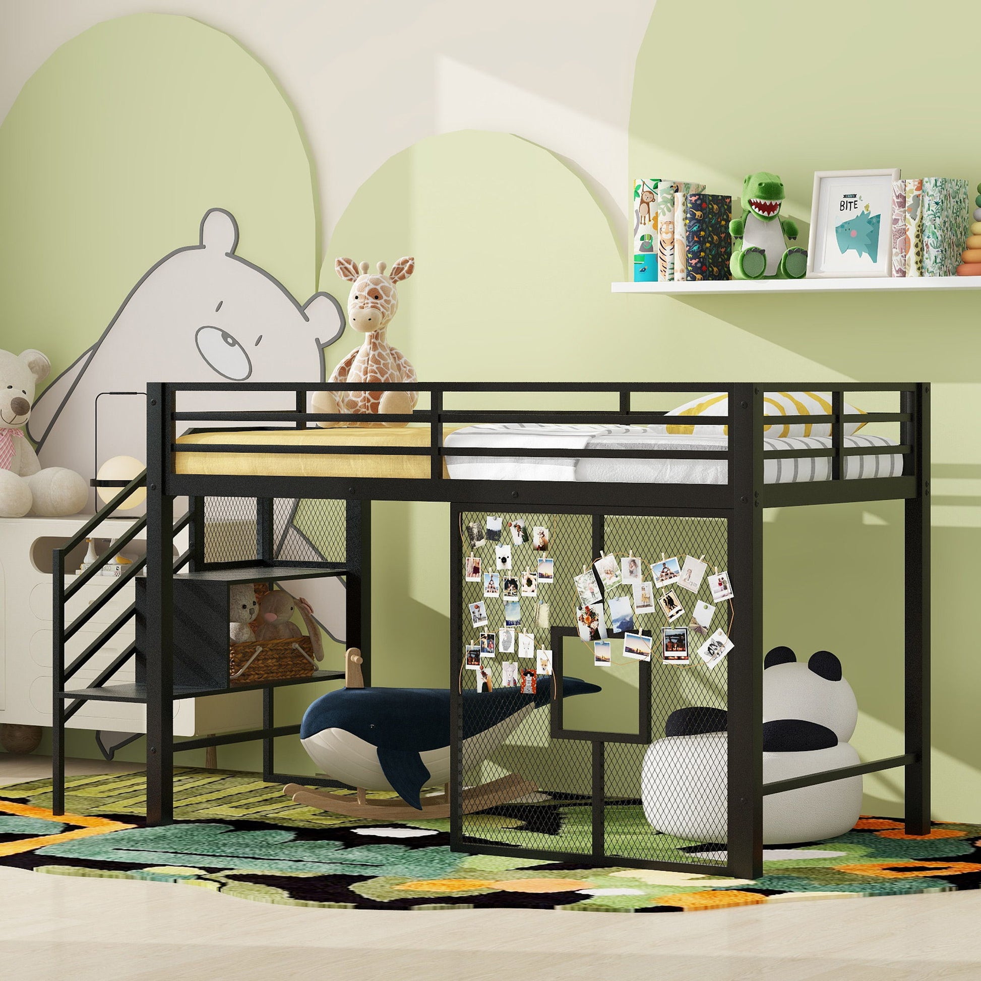 - Loft Bed with Storage Staircase: Built-in two-step ladder and dual storage zones beneath for books, toys, and essentials