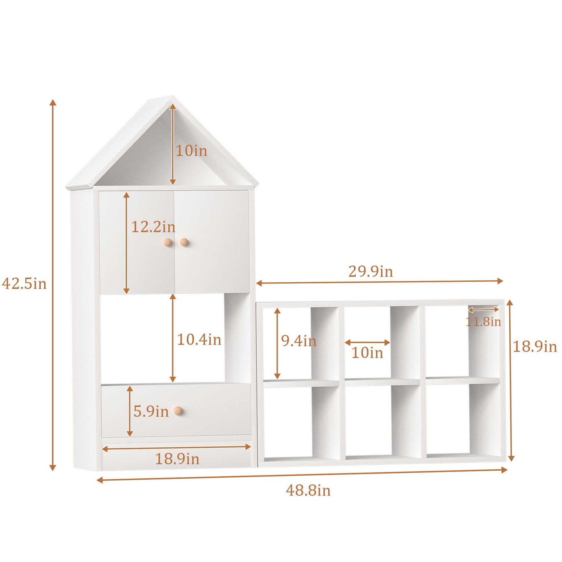 Versatile Kids Bookshelf With House-Shaped Design Multifunctional Storage, Durable - White