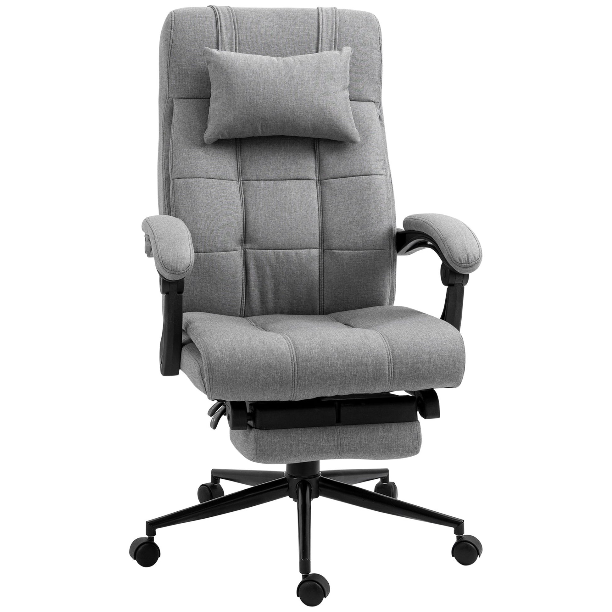 Vinsetto - Executive Linen-Feel Fabric Office Chair High Back Swivel Task Chair With Adjustable Height Upholstered Retractable Footrest, Headrest And Padded Armrest - Light Gray