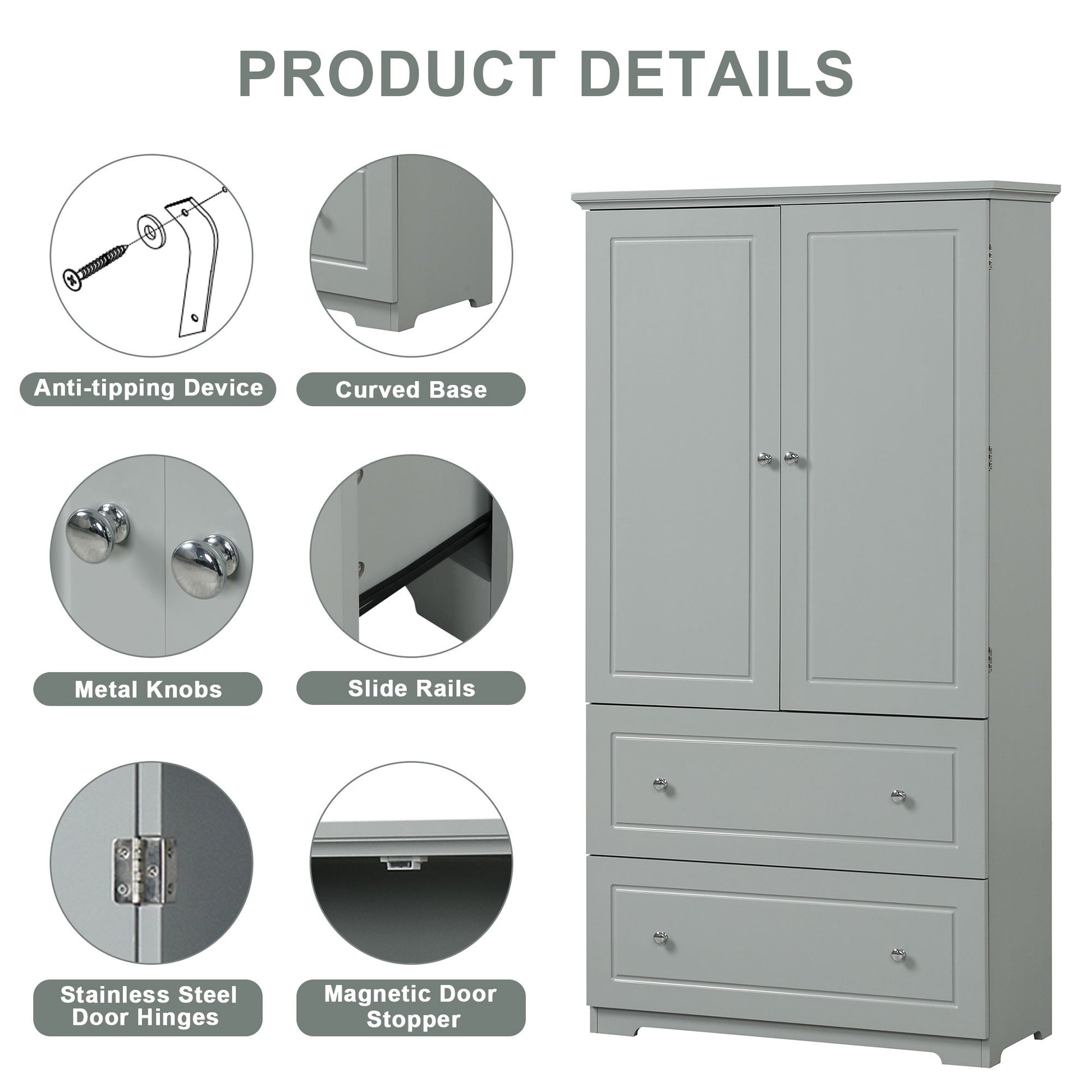 Wide Bathroom Storage Cabinet, Freestanding Storage Cabinet With Two Drawers And Adjustable Shelf, MDF Board With Painted Finish - Gray